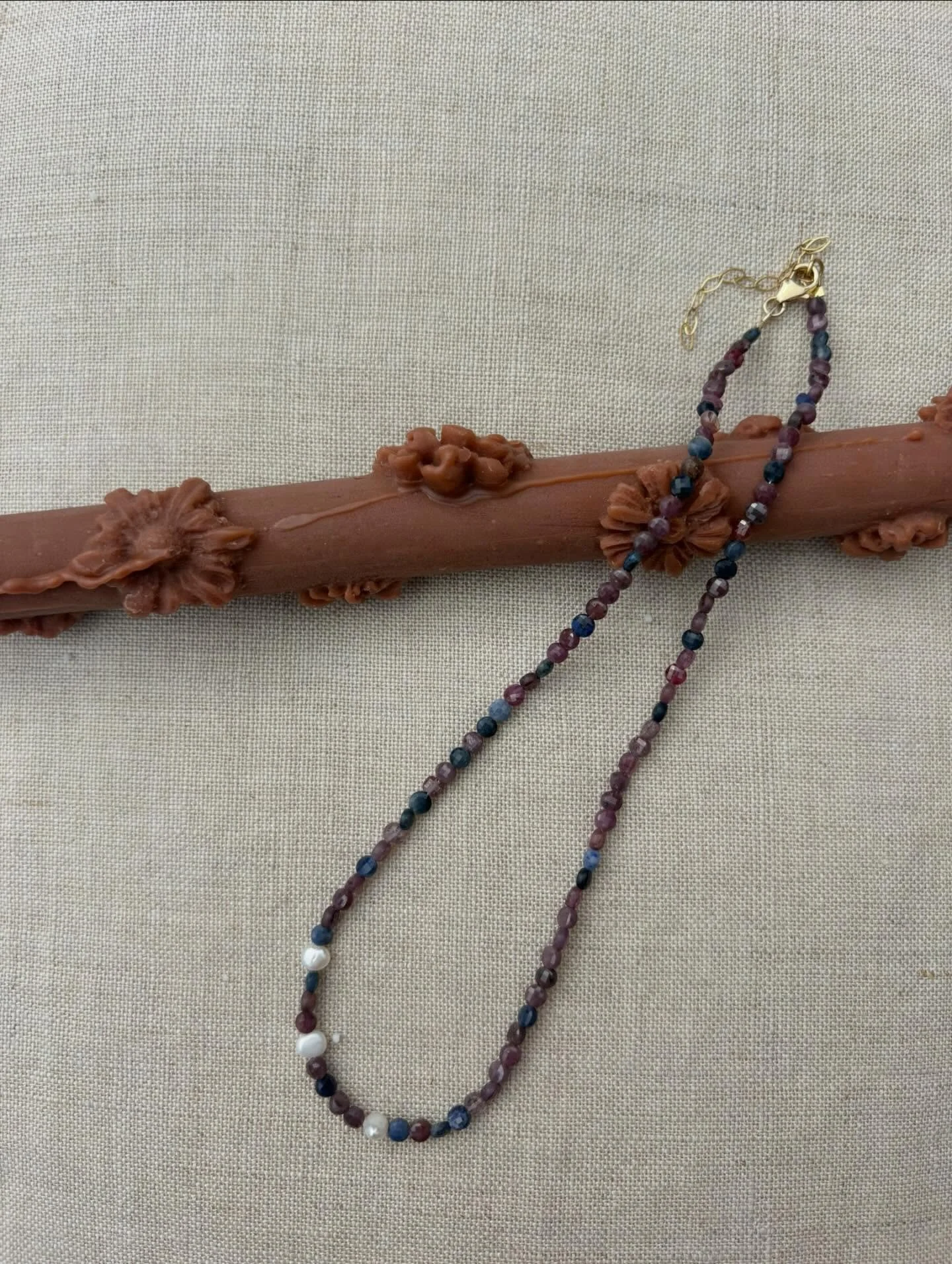 The Blue Onyx Necklace features deep, ocean-toned beads that carry a quiet, grounding beauty. Each stone reflects rich shades of blues that surround us everywhere, creating a look that is both calming and refined. Blue onyx is often associated with inner strength, clarity, and steady confidence — a gentle reminder to move through life with calm focus and quiet resilience.